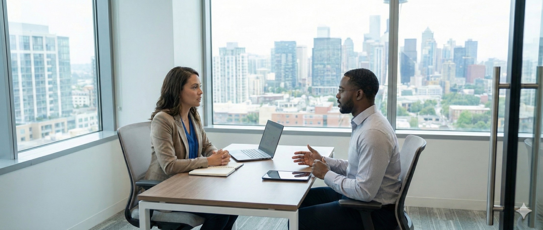 Business consulting interaction with professional guidance.