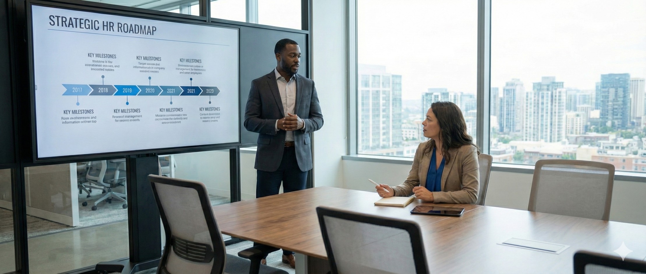 Business consulting interaction with professional guidance.